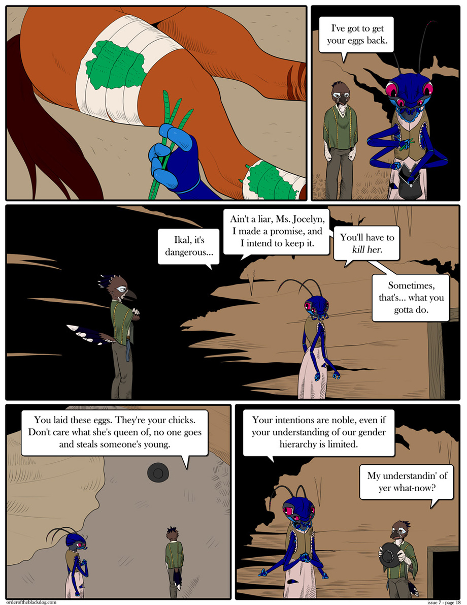 *Chuckles* Okay, Ms. Jocelyn wins the award for the most unique and interesting case of cross-dressing, I've ever seen. Up till now, I was assuming she was a sterile female, like most insects, or some kind of juvenile queen.