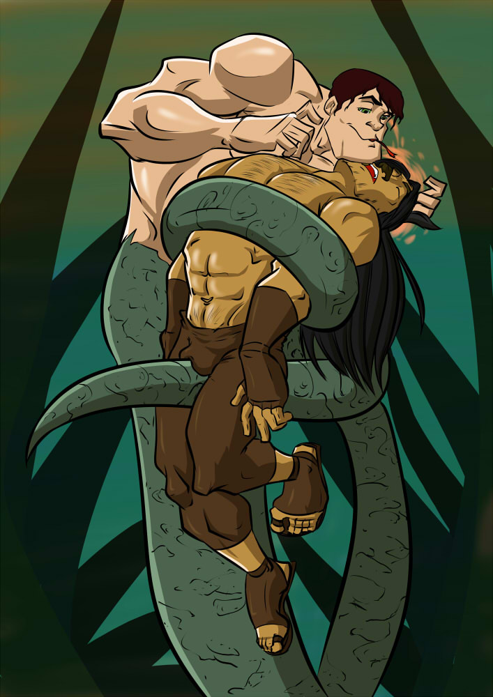 Had a previous scene in mind where Bulgah encountered this massive naga dude who has a penchant for roughhousing travelers for entertainment purposes. Well, one mistake lead to another an Bulgah fell in its gripping gaze after running out of stamina to keep up with tha beast.