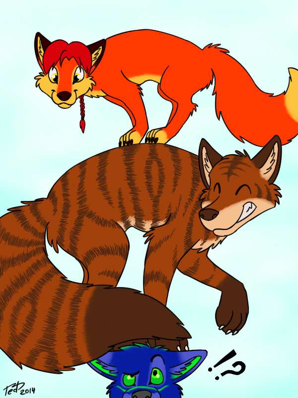 A silly idea I've drawn featuring me and my friends Foxzen and Jumpy.