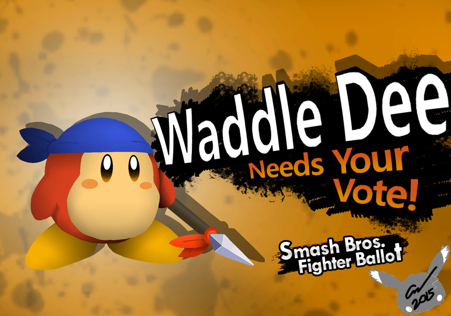 Please vote for Waddle Dee for Smash! he's the perfect 4th Kirby representative! if anyone ever played Kirby's Return to Dream Land, would know that waddle dee can kick major ass!!! To those who doesn't know him and have never played the game, please go to youtube and look him up. He's truly awesome