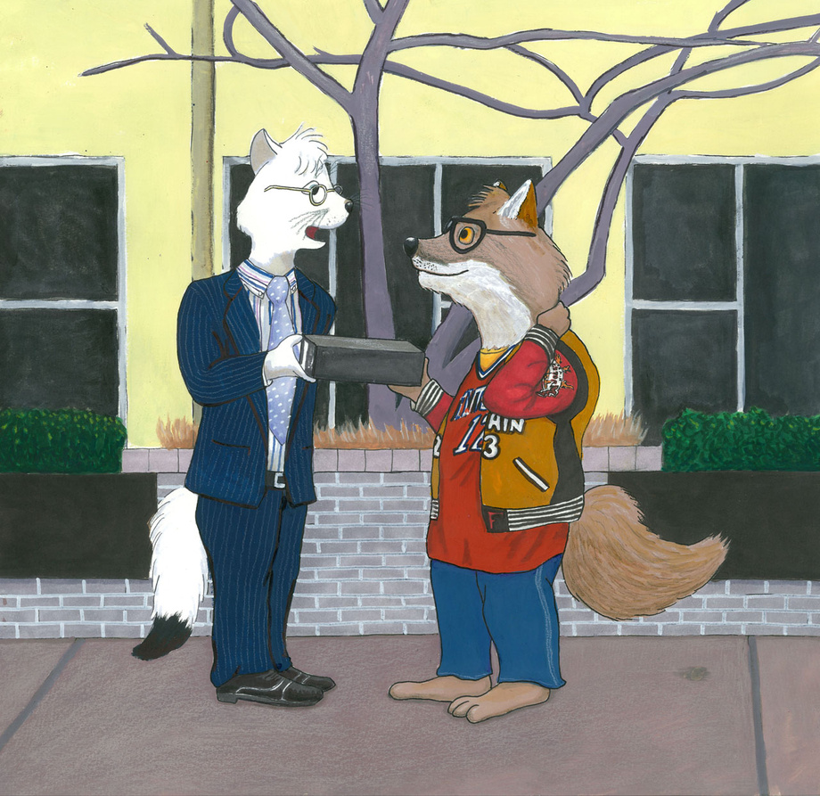 Another commission for Buck Hopper. This one features his other character, T.Matt Latrans, a sports commentator, presenting FBA player John Stoat with a gift. This pic was meant to tie in with a "sound story" Buck recorded with himself and a friend depicting the event.