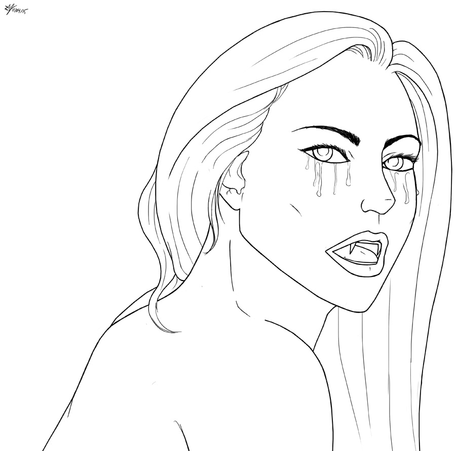 Juliette: Mmm... my favourite. Oh, and you brought company. Don't mind the blood tears... or the fangs... I don't... bite. Not when this delicious morsel is on the menu.