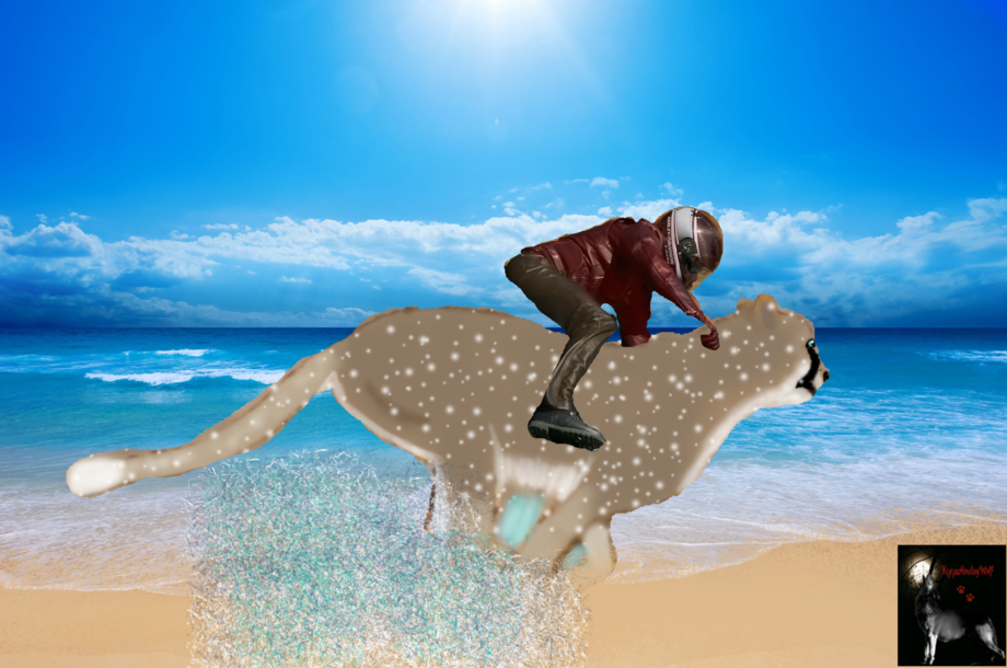 RWS Jasmine and her rider/handler Hitomi racing through the surf for Jasmine's free will test.