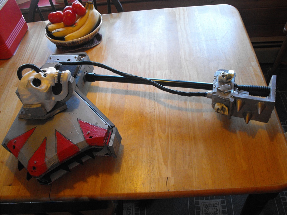 Thanks Gener, actually hefting it with the handle, as is, isnt the best. there the head is a bit to heavy for the screwed down handle to keep straight I might be adding some reinforments to the shaft and to suport to the head. it'll asl give me a good spot to nail down the power cables. though having them free is kinda cool 'm worried about them snagging on something