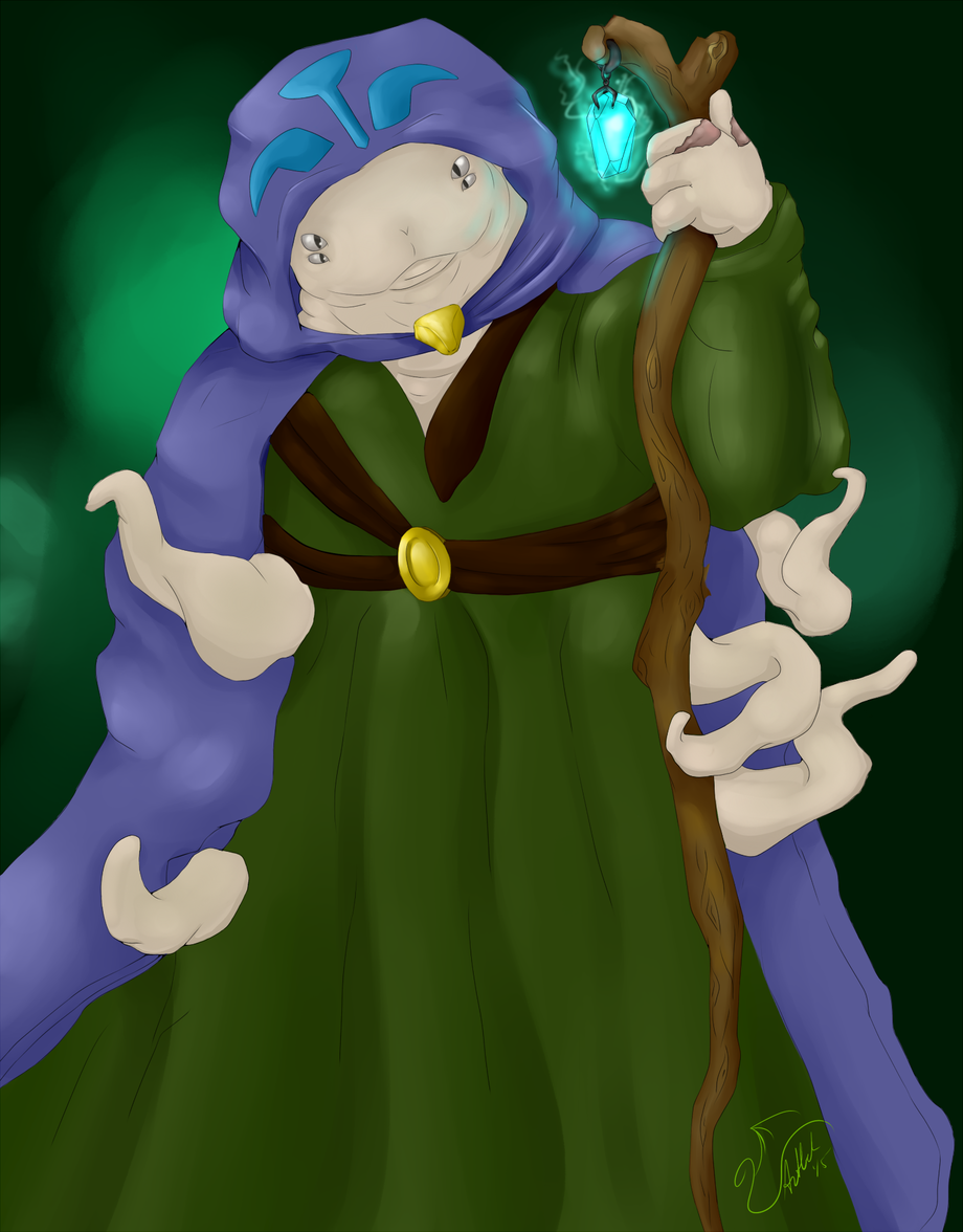 Someone in a chat I was in was on about cloaks. And I had an epiphany. What if Gorlan had a cloak, and mage's robes and was maybe a magical being and not an alien? So here's my take on Magical Gorlan with his periwinkle cloak, because he loves that colour and his wizards staff with it's glowing doodad dangling off the top. I think he looks rather dashing. By the way, his hidden hand is on the hilt of his sword. Even a mage needs a sword.