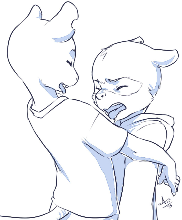 Zane was hugging the shy raccoon when, unexpectedly, he leaned forward and LICKED him. Sparky is gagging melodramatically, but he really is grossed out by it
