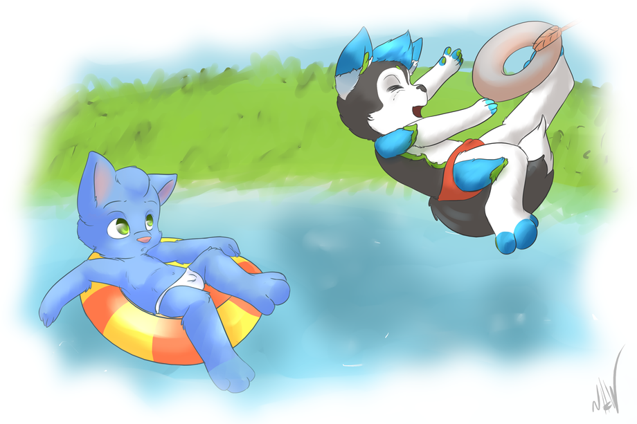 gah >.<!! i dun wanna get splashed! D: here i am soakin up da sun den you get a crazy psycho hyper spiffy flying into the pool! *pouts* cant a kitten relax these days?! D: