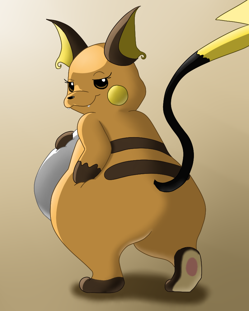 Was chatting with a friend on Skype and he suggested a female Raichu. I do love Raichu so I figured I'd draw it. Here she is with a full belly and letting the viewer admire her rear. It's either that or challenge her to a battle and end up as food like the previous victim. But it goes to a good cause! All prey goes right to the hips. Why do you think this Raichu is a bit more bottom heavy than normal? I think this smug Raichu might have an unfair advantage with all that power she's gained from her victory meals...so powerful that no matter how hard you EV train, it won't be a match! Enjoy ^^