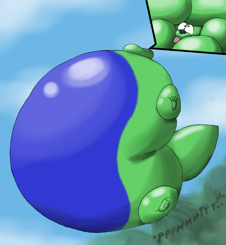 This is a pic of the commissioner's OC dog in a toonish inflating situation and seems he is deflating though the back end. Not that I wont mind smelling but what about all of you? Having your local parade balloon deflating hugely over you? XP