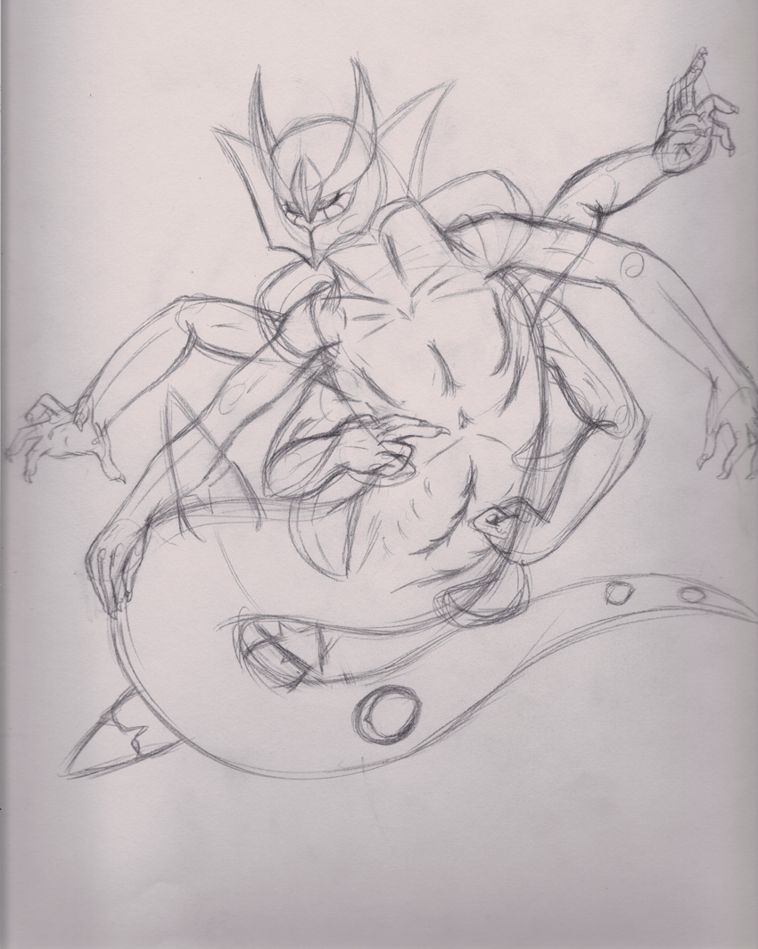 I was looking at Giratina's derpy-looking origin form, and I wondered how it's weird caterpillar sock things on its back would work out as arms. This is the not so finished result.