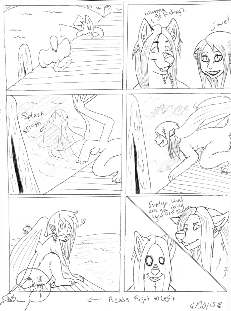 me and my friend Bardolf_Snowolf were talking about going fishing this summer then I had the funny ida of drawing Bardolf_Snowolf and Evelyn going fishing!!