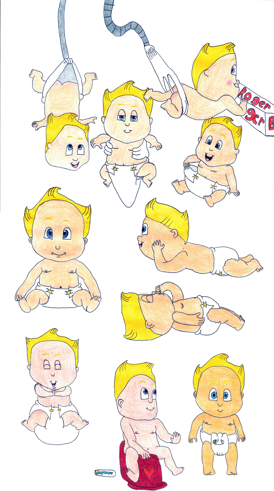 This time, I got him in some diaper situations as well as some more poses. Also you'll notice how his skin is different colors since I ran out of one of the color I used for him and eventually went with the color that was close to the previous color being used which is used in the one where he's clothed diaper (which for some strange reason is my favorite picture of him)
