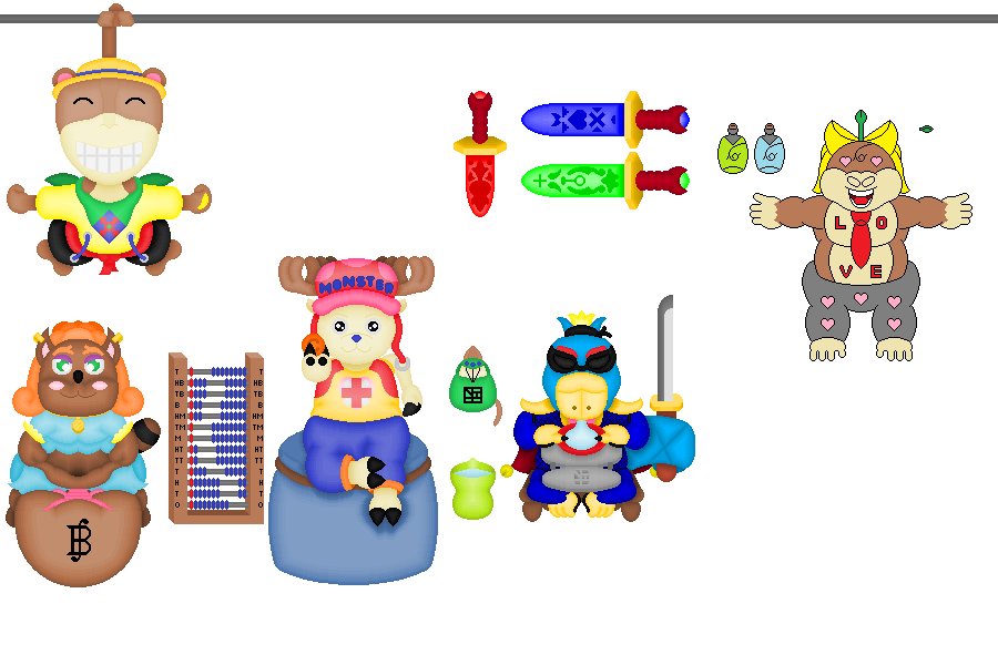 This time we got a love-crazed gorilla. He is a collector of fragrant collognes and has a flower on his head that grows, blooms, and withers depending on his current situation with his momentary infatuation.