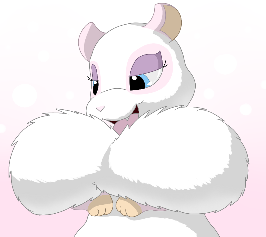 Shortly after making Marshmallow, I realized what was wanted. So here it is. I mean I wanted to draw this too XD She has eaten her prey and got instantly fluffier! Quite a fun perk of hers. Now she is just admiring them, pushing them up with her little paws and arms. Enjoy ^^