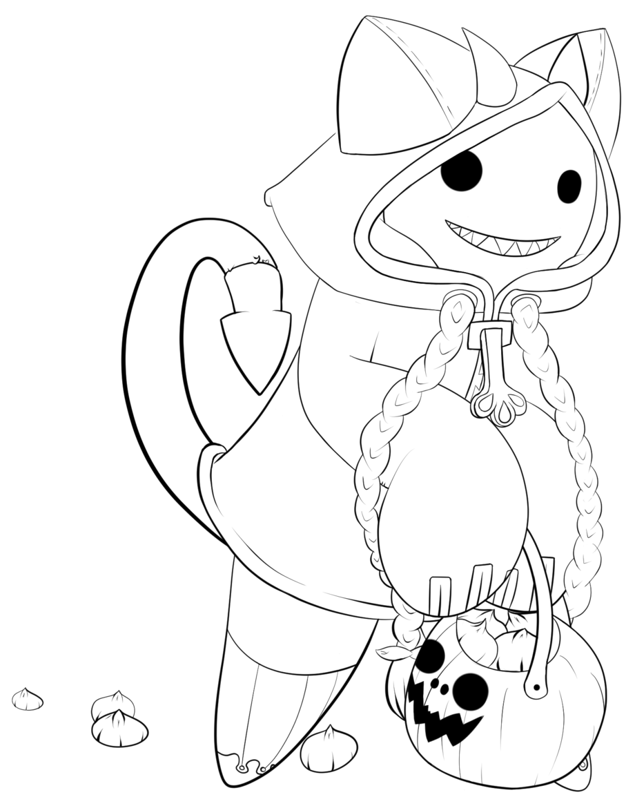 Halloween commission for a friend of Taokaka in a chibi form going trick or treating. of course she only accepts the best treats of all!