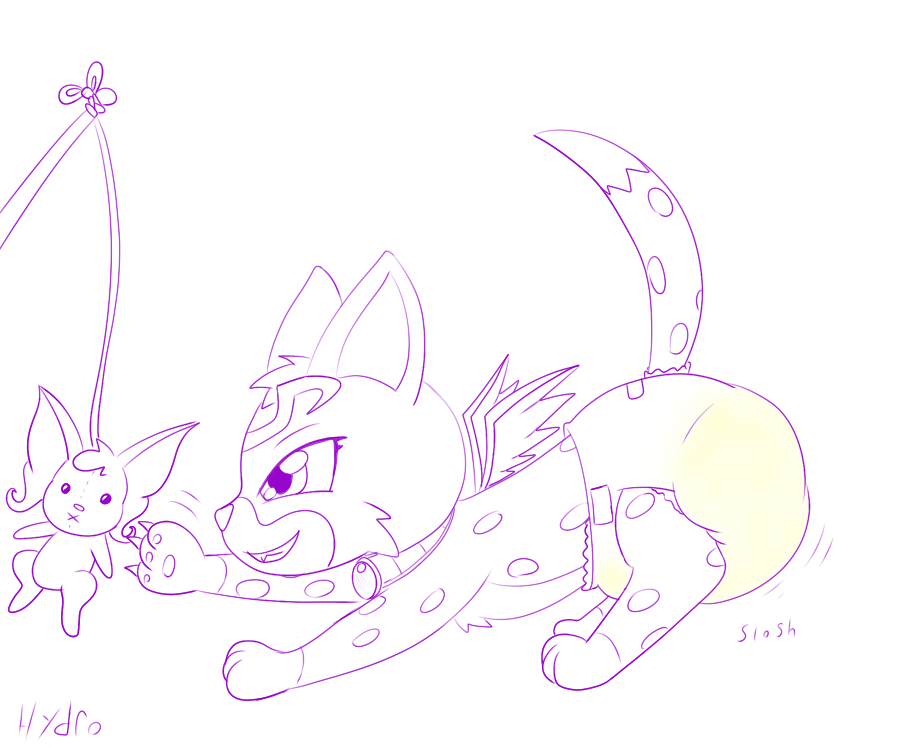 Another warm-up/practice doodle of a petpet, this time it's a Mauket (or Stilken as one) playing with a Miamouse toy. Of course, I have versions where she may have been playing for too long without a diaper change as well.