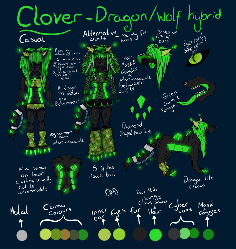 Clover was in desperate need of a new reference so i've made her one (and it took forever to do) which now includes and alternative outfit for her ^^