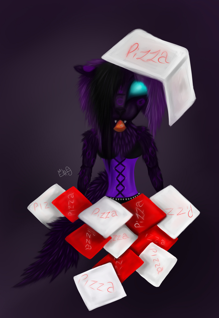 So i decided to have a mess about with different styles and ended up creating this picture in a more painted styles. This was all done on two layers (background and main picture). It's a style i would need to practice with but it's one i could get used to. I thought chibi Crystal eating pizza and surrounded by empty pizza boxes would make a pretty cute subject XD