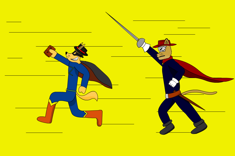 Yeah ever since I heard of Zorori, I can't get the fox out of my head! I want to watch a few of the episodes! Since he's a prankster and a troublemaker, I thought it'd be funny if he stole D's wallet, and D was chasing him.