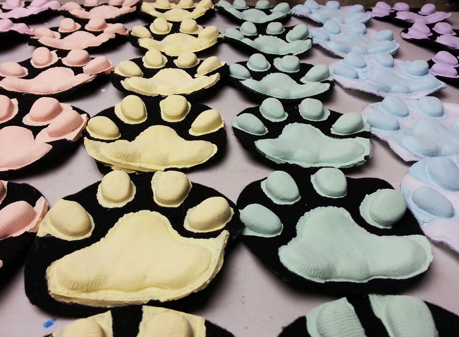 Here's the fruits of my labor over last week's crafting project. Ended up making a total of twenty sets of latex paw pads in various spring colors!