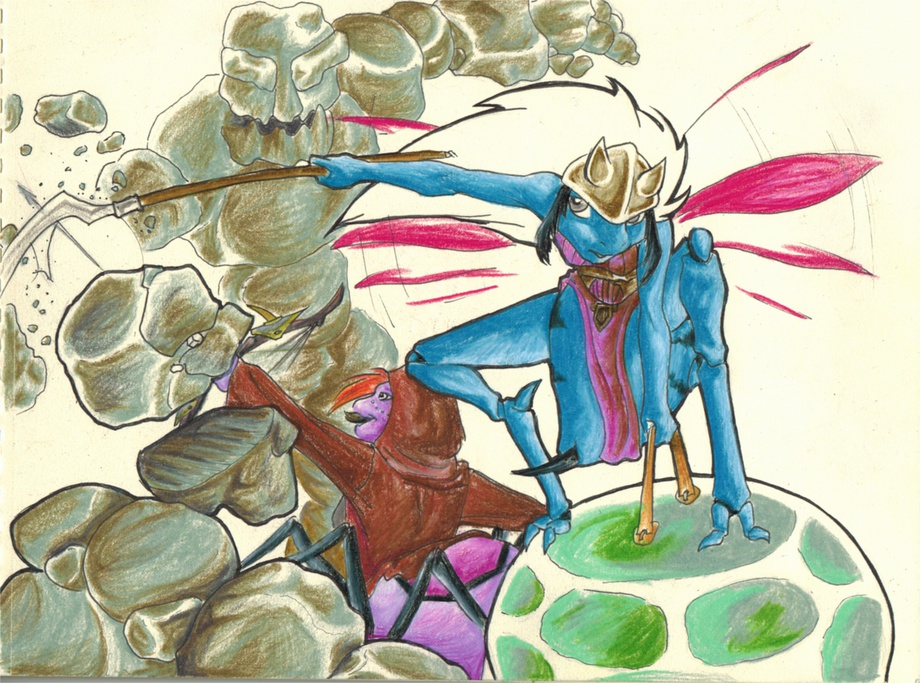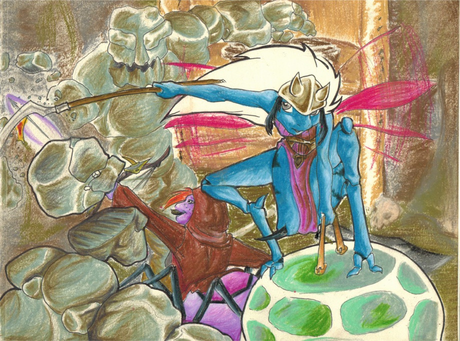 Was up til 3am on this one and didn't actually notice until I was done inking. an older Erin and Jacki (which yes is her official name I'm just neglectful of my characters and got it wrong XP) nicking a sacred gem roughly the size of well THEM from a golem infested ruin.