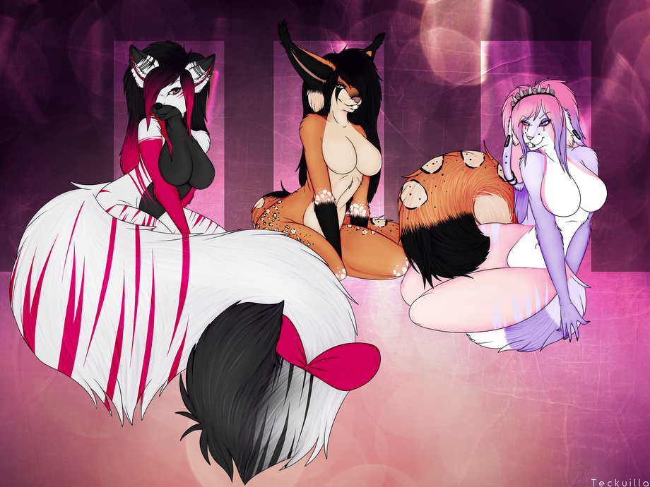 Another commission for Dollificbrat at Furaffinity, feauturing two of her characters and mine in the middle.