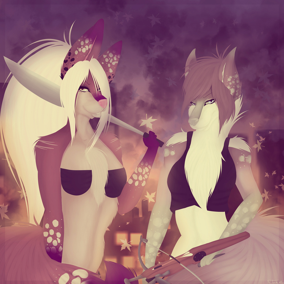 Digital painting of Leenda and her sister Nami, who belongs to MATicDesignS at DeviantArt.