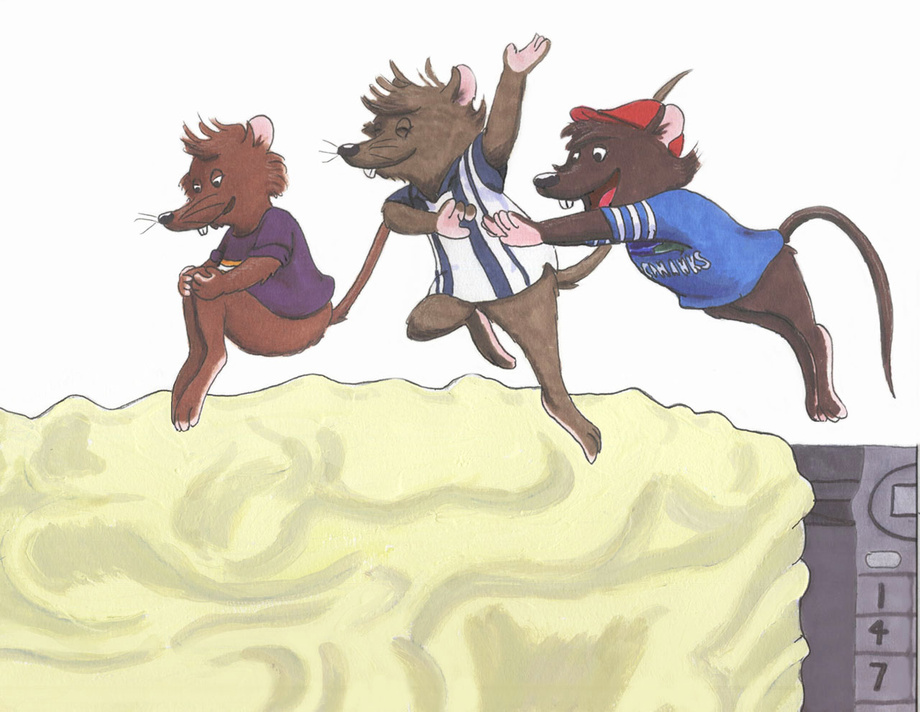 3 rats diving off a microwave into a newly-frosted cake. :3