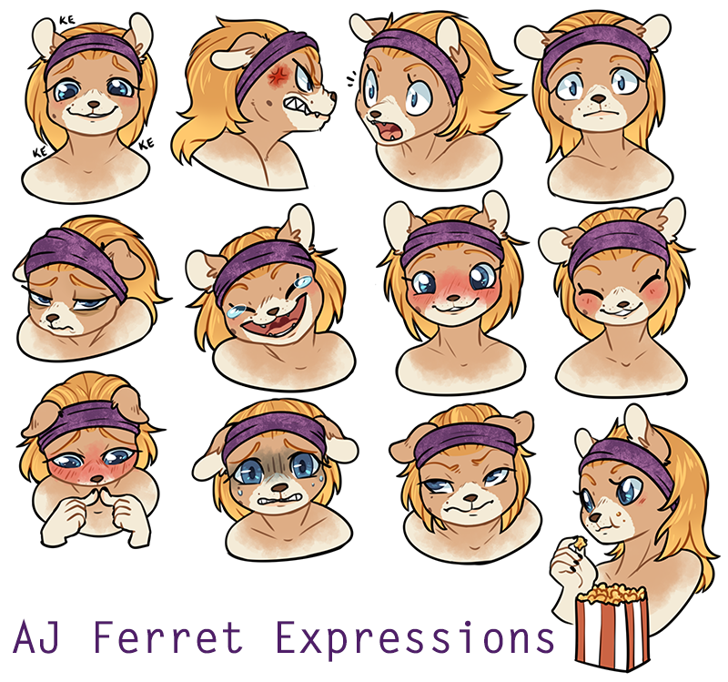 2014, Emote chart of AJ ferret! This was so much fun to do, I can't wait to make one for Prov Polar Bear. C: