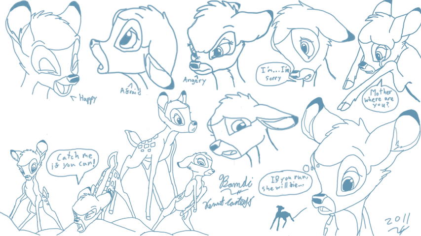 More character sheets for Prince, this of course is Bambi, playing with as many Disney deer as I can to build the look of the younger Great Prince for the story.