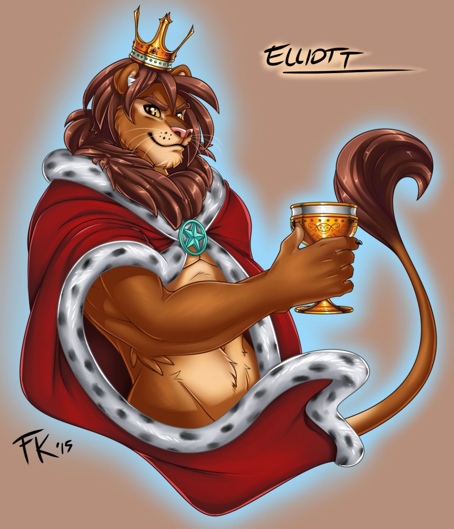 The artwork for this year's Elliott's Spring Gathering. King Elliott in the flesh, covered by fur. This was a lot of fun, as was the event, and it was great to see this out all over the con badges, shirts, etc.!