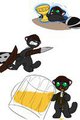 Kain and another (very large) adventurer in his party just got done unlocking a treasure chest in a dungeon, when suddenly some tasty looking meat pops out! Kain obviously isn't pleased - after all this walking around and disarming traps and fighting imps and whatever else all that's in the damned chest is food?? His large adventurer seems to not care and wants to go for the food... But Kain glares at him with a "Are you really that dense?" look...