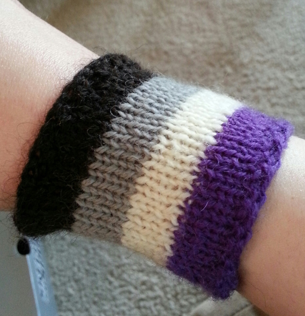 I would be happy to make more of these for anyone who's interested! Price would be $15, shipping included. If you would like to buy an Ace Flag wristband with any of my other gloves, that will all be included in the free shipping. Email me at ktbyrd@gmail.com or message me on Facebook (https://www.facebook.com/ktbyrd.knits).