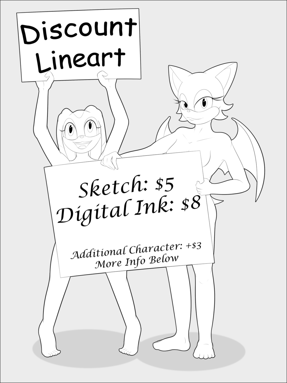 All prices listed are in USD and are non-negotiable. "Will NOT Draw" list is non-negotiable. I may refuse commissions due to content at my own discretion; just because it isn't on the list doesn't mean I won't refuse it. Half of the payment will be requested immediately, and the other half upon completion. Payment is via PayPal ONLY. Commissions are filled on a first come, first serve basis. Commissions are private and are NOT posted to my gallery without prior consent from the client.