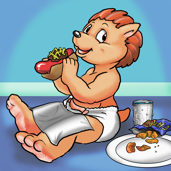 Wait...he a hedgehog? :O Still, he must have strong teef. 8O