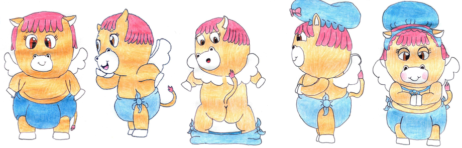 This is Persephone. Born with a pouch on her tummy, it was revealed, even at birth, she was destined to be a motherly figure towards her friends, piers, and even bare a child one day. She loves to dress up in very mature clothing to symbolize her more responcible figure and status to show that she is indeed capable of such tasks like her favorite sleeping cap and bonnet. She can be quite protective when it comes to caring for someone she loves very deeply and will stop at nothing to keep them out of harms way, even if it means fighting, which she doesn't want to get involved with. She was one day found by a race of people who have given her a task to be the mother to a very special baby. Who is this special baby? Well, lets just say that she is of royalty in a kingdom of gold in the clouds ^_0