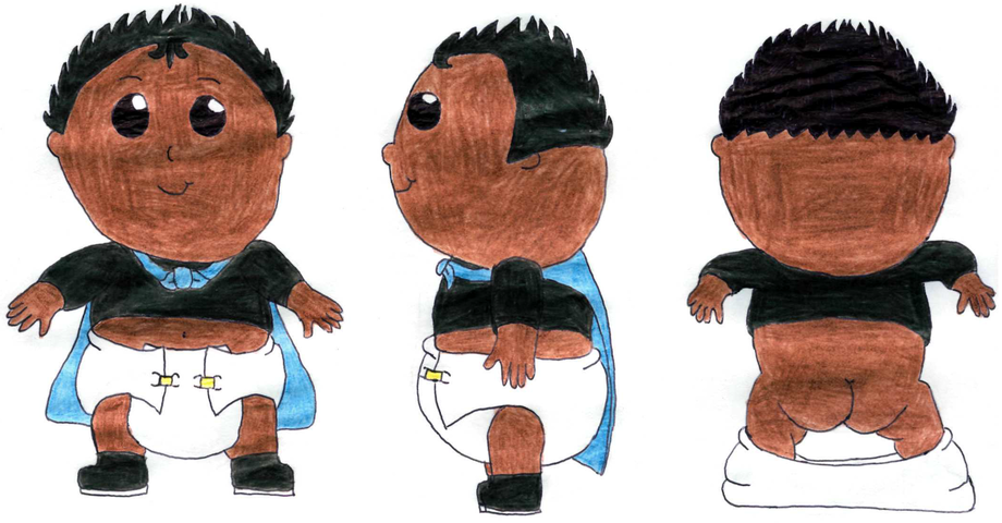 This character has a bit of history behind him since I have had this idea of him for at least 4 years but could never find out how to use him. The initial idea actually came to me in a dream I had of, for some odd reason, Mr. Incredible (The Incredibles) as a baby around the age of 2 or so, but with the mental status of an adult like using the potty and speaking clearly but with a young voice. so I worked that idea into what is this character today, I might even post some old artwork of him later.