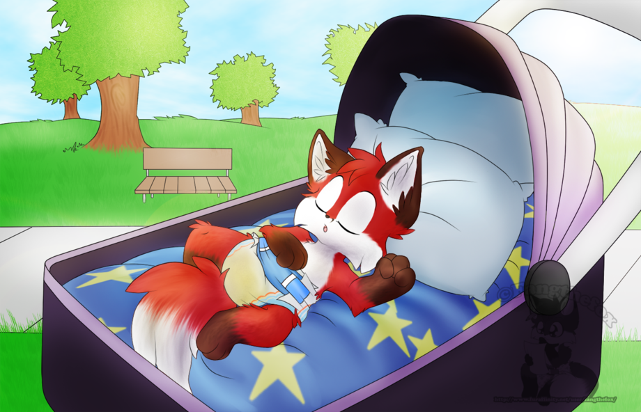 Foxy and his mother was out this beautiful day in the park during Foxys afternoon nap. It was good for his mother that Foxy always sleep so good in his stroller because during the time Foxy was asleep his mother could go out for a walk whit him or sit down on a park bench and read the newspaper while Foxy slept peacefully in his stroller.