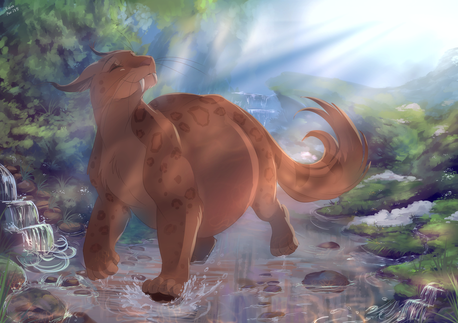 As springtime approaches, so does Feligris' girth increase - thus she's enjoying the scent of the forest which slowly awakens from winter slumber, thinking how it's almost warm enough to have her litter...