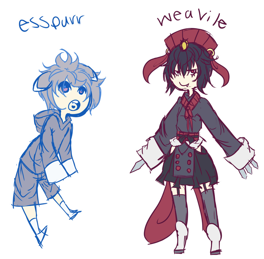 The simple & revised sketch for my next drawing....a dashing weavile and a cute espurr. And yes, the espurr is a boy :D