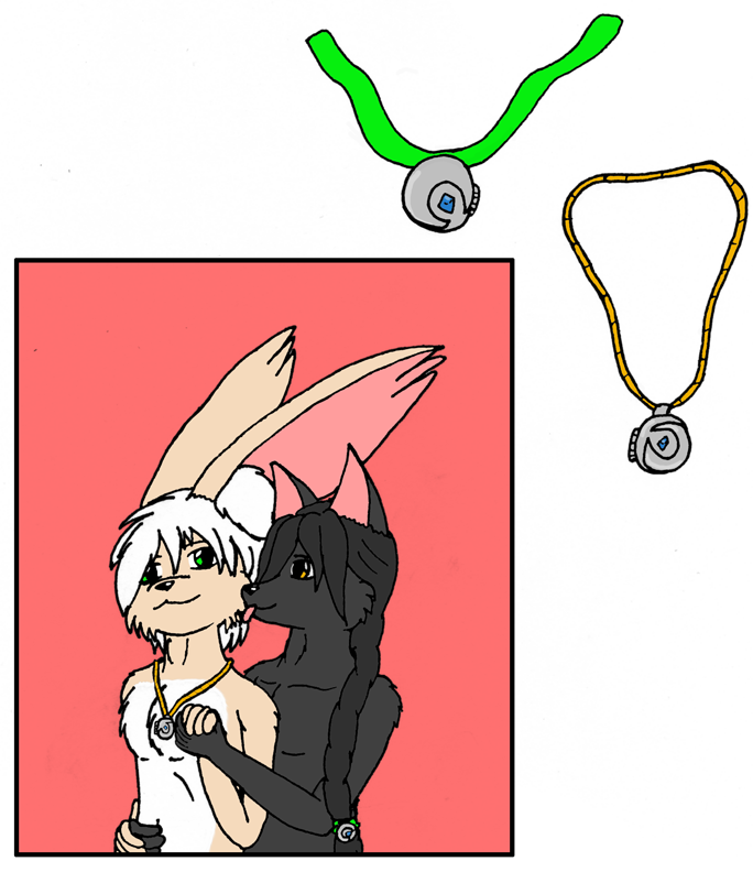 for our special day. I'd been toying with the idea of doing something like this for a while, having Sefra and Damien have matching lockets and whatnot. Just something sweet like that. Finally I came up with designs I liked, and so here they are~ Expect to see Damien's hairtie locket from now on.