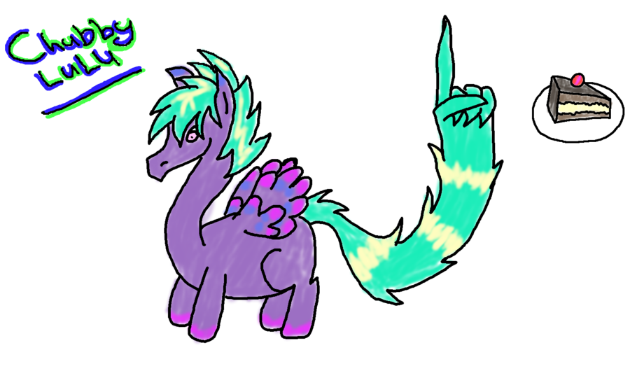 a chubby little Pegasus who discovered she can control her tail as if it was a 5th appendage and likes to gorge on cake