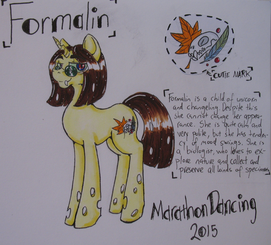 Usually nothing, but wears gloves and protective jacket when she is preserving samples. When it's chilly she wears a trench coat.