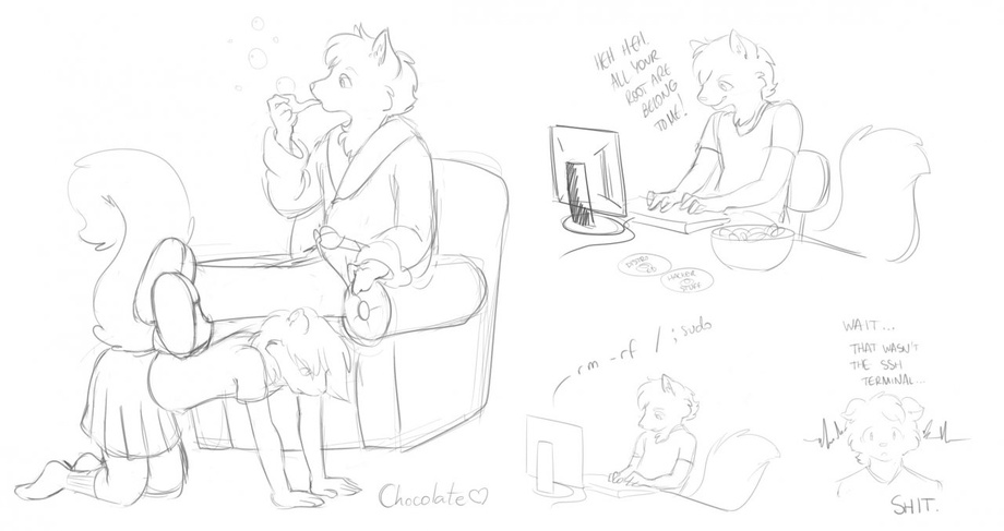 zipperipper also got himself a sketch sprint last night, for which he gave the keywords "portal," "pony," "cuddles," "deal with it" and "/user/f0xk1t" a.k.a. wolfie.