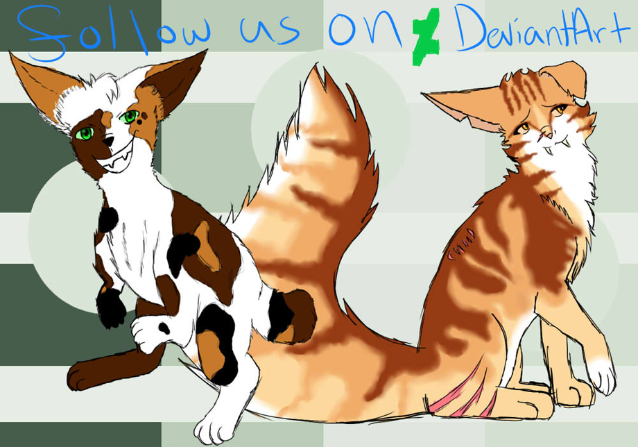 These two are for a warriors group on DA, where one clan, Beastclan, is filled with cats with deformities. Like these two, the calico male, Swiftclaw, has short bent front legs, while the Orange tabby, Felicity, has oversized fangs.