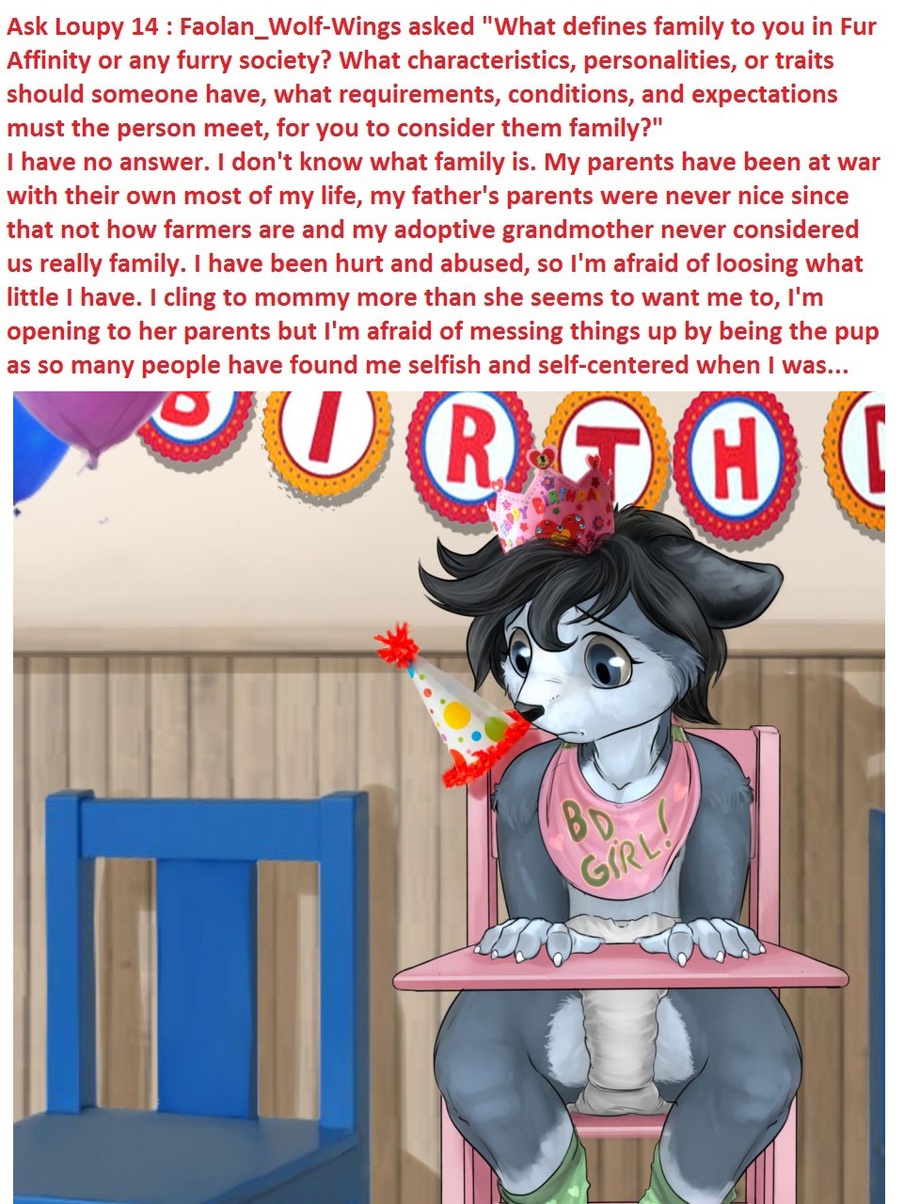 I had a dream last night... based on something I discussed with Mommy earlier than day. In the dream, we were discussing which picture to put in my baby album for her to have in her computer. She teased me about which pictures would be the cutest and most embarassing to save. The dream was pleasant. I don't know if we will do it irl but I would really enjoy that. Which lead to taking this picture : http://s240.photobucket.com/user/Loupy/media/RL%20pics... it relates to the dream, but also the ask Loupy. I actually made the Dalmatian plushie I spoke of hold the camera because otherwise I could never have got such an angle. The concidence made me want to share it.