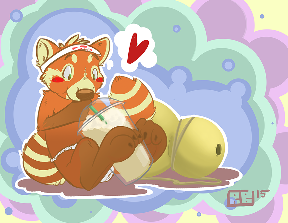 Alas, his first time is with a sugary milkshake disguised as coffee. Nice way to keep those paws nice and cool though. =3