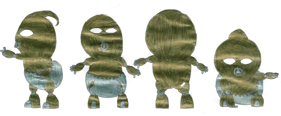 He is an invention made by the government of New Stork City in a paniced attempt to rid Sparky for fear he might turn against the human race. In other words, he was made for a good purpose with a bad purpose in mind and thus it is up to INFANT to discover who he truely is. An Artificial Intellegence, or a killing machine? Also, his diaper is actually a metalic plate that can attach and detatch from his waist to cover up his metallic behind.