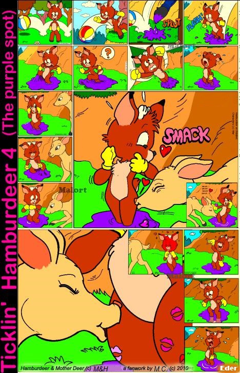 Hamburdeer is cached in a spot purple, Mother Deer goes where is her son, and as mother demonstrates her love, instead of being helped, he's kissed on his legs.