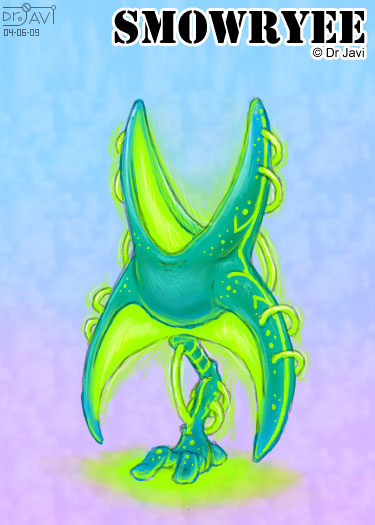 Surprisingly, they also move pretty fast on their only foot. The Smowryee are strictly asexual and reproduce by bipartition: when reaching a certain mass, they tear apart in two halves which share their parent's knowledge.